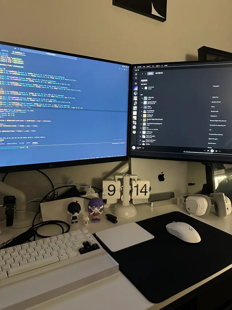 듀얼 모니터는 개발할 때도 참 편했습니다. 한쪽엔 코드, 다른 한쪽엔 결과물을 띄워두면 마치 개쩌는 슈퍼 프로페셔널한 개발자가 된 듯한 기분이 듭니다. 근데 이 글을 쓰는 지금은 모니터 하나가 고장 나서 반쪽짜리 개발자가 됐습니다.