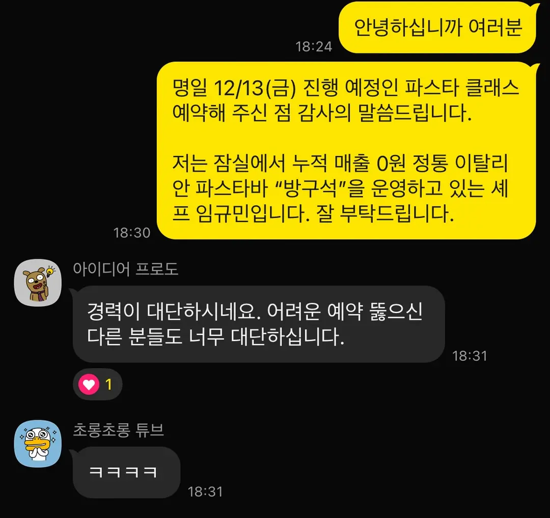 한번 해 보고는 어깨뽕이 제대로 올랐는지 직장 동료분들을 집에 초대해 생 파스타 클래스를 열었습니다.